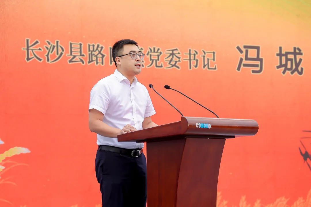 在鑼鼓聲中,活動正式開始。長沙縣路口鎮(zhèn)黨組書記馮城向廣大農(nóng)民朋友致以節(jié)日的問候和美好祝愿。