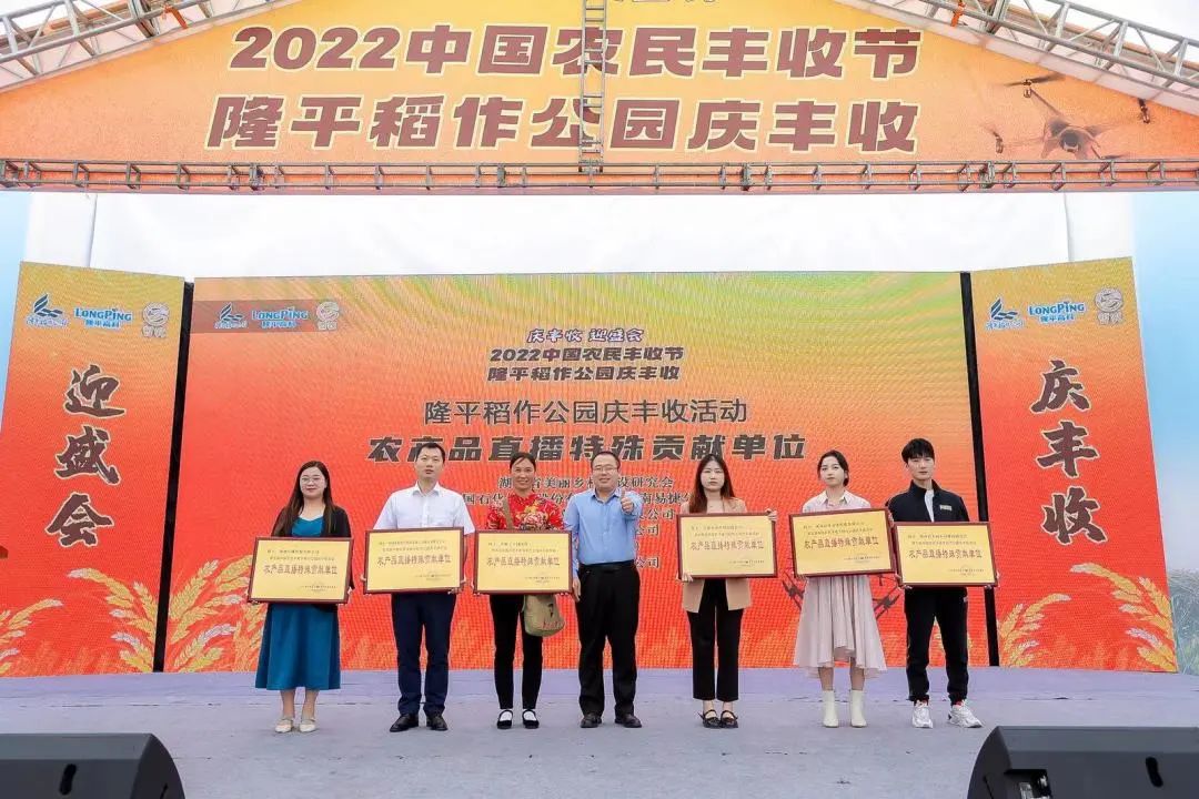 此次豐收節(jié)進行了農(nóng)產(chǎn)品直播帶貨展示,袁隆平鮮米等隆平高科農(nóng)產(chǎn)品通過直播展示給廣大消費者,以大米銷售帶動農(nóng)民稻谷銷售,促進農(nóng)民增加收益?,F(xiàn)場,宮俊濤還為農(nóng)產(chǎn)品直播特殊貢獻單位頒發(fā)了獎牌。