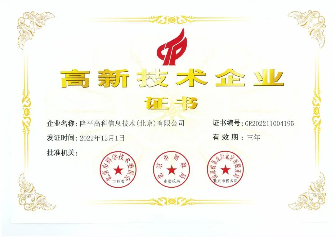 2022年12月1日,隆平信息通過了由國家科技部、財政部和稅務總局委托北京市科學技術(shù)委員會、財政局、稅務局組織的國家“高新技術(shù)企業(yè)”認定,并榮獲國家“高新技術(shù)企業(yè)”稱號。本次成功入選國家高新技術(shù)企業(yè),是隆平信息科技成果水平和產(chǎn)品技術(shù)含量取得進步的一個里程碑,體現(xiàn)了國家相關(guān)部門對隆平信息近年來工作的肯定。