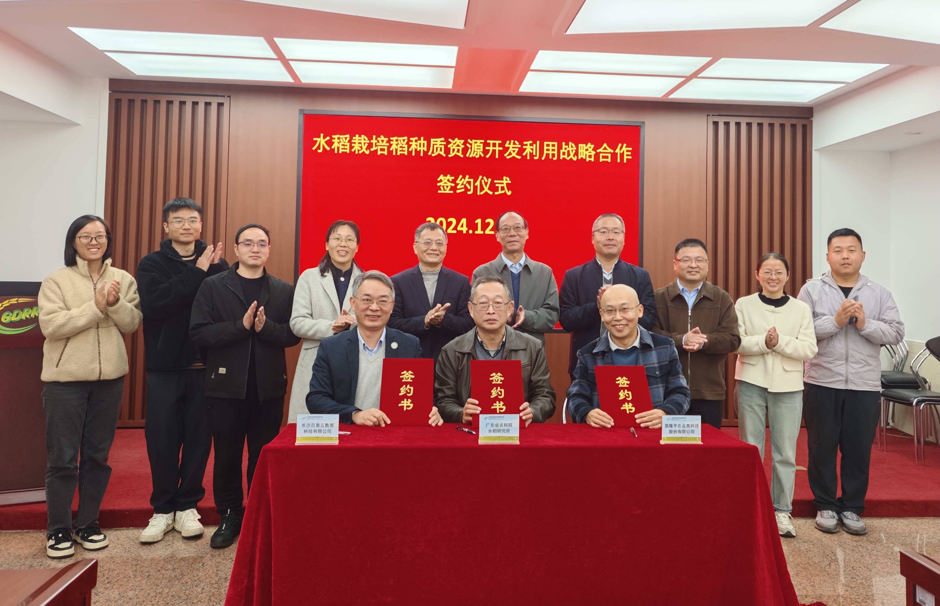 為落實(shí)習(xí)近平關(guān)于做好“三農(nóng)”工作的重要指示,推進(jìn)農(nóng)業(yè)科技力量協(xié)同攻關(guān),助力我國現(xiàn)代種業(yè)發(fā)展,12月19日,隆平高科與廣東省農(nóng)業(yè)科學(xué)院水稻研究所簽訂戰(zhàn)略合作協(xié)議。同時(shí),為充分發(fā)揮稻種資源的價(jià)值,隆平高科與廣東省農(nóng)業(yè)科學(xué)院水稻研究所、長(zhǎng)沙百奧云數(shù)據(jù)科技有限公司簽訂了水稻栽培稻種質(zhì)資源開發(fā)利用戰(zhàn)略合作協(xié)議。廣東省農(nóng)業(yè)科學(xué)院水稻研究所黨委書記肖昕,副所長(zhǎng)李健雄、潘俊峰、陳國榮及水稻遺傳資源研究室主任李晨,長(zhǎng)沙百奧云數(shù)據(jù)科技有限公司商務(wù)副總王艾青、AI與大數(shù)據(jù)總監(jiān)彭建祥,隆平高科黨委委員、科研管理部總經(jīng)理?xiàng)顝V,隆平高科種業(yè)科學(xué)院副院長(zhǎng)王凱等出席簽約儀式。廣東省農(nóng)業(yè)科學(xué)院水稻研究所所長(zhǎng)何秀英主持儀式。