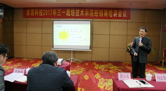 隆平高科總裁助理、農(nóng)易科技董事長范小兵在會上作了《農(nóng)易科技發(fā)展戰(zhàn)略及運(yùn)營模式分享》專題匯報(bào),他從行業(yè)趨勢與機(jī)遇、我們做什么、核心技術(shù)與平臺、我們怎么做、推廣模式、筑夢前行六個方面向示范經(jīng)銷商們描繪了農(nóng)易科技發(fā)展的宏偉藍(lán)圖。相關(guān)工作人員還進(jìn)行了三一栽培技術(shù)實(shí)操培訓(xùn)、《三一栽培技術(shù)示范要求及宣傳方案》分享及《三一栽培示范上的信息化應(yīng)用》闡釋。