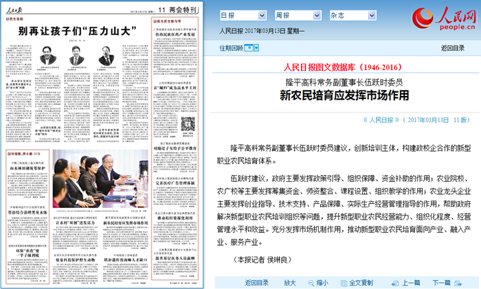 隆平高科常務(wù)副董事長(zhǎng)伍躍時(shí)委員建議,創(chuàng)新培訓(xùn)主體,構(gòu)建政校企合作的新型職業(yè)農(nóng)民培育體系。