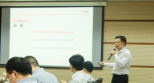 在隨后的座談會(huì)上,毛長青作題為“科技為本,金融為用,自主創(chuàng)新打造種業(yè)航母”的中信集團(tuán)種業(yè)科技創(chuàng)新工作匯報(bào)。他指出,“中信集團(tuán)旗下?lián)碛新∑礁呖?、首農(nóng)集團(tuán),成為中國唯一橫跨動(dòng)植物育種的企業(yè),在動(dòng)植物育種方面已取得諸多驕人成績。中信農(nóng)業(yè)戰(zhàn)略的最終目標(biāo)是打造民族種業(yè)航母,讓中國種業(yè)在國際上有更多話語權(quán),中信集團(tuán)有信心完成’國家種業(yè)自主創(chuàng)新工程’?!?