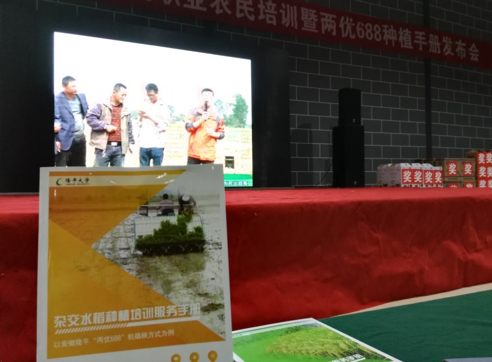 第二個(gè)階段是隆平大學(xué)兩優(yōu)688標(biāo)準(zhǔn)化種植手冊(cè)發(fā)布會(huì),發(fā)布會(huì)將本次會(huì)議引向高潮。為實(shí)現(xiàn)隆平高科的企業(yè)愿景——世界優(yōu)秀的種業(yè)公司,致力于為客戶提供綜合農(nóng)業(yè)服務(wù)解決方案,隆平大學(xué)自2016年啟動(dòng)了以隆兩優(yōu)534為案例,基于優(yōu)勢(shì)大品種的標(biāo)準(zhǔn)化培訓(xùn)服務(wù)體系的建設(shè)工作,獲得了產(chǎn)業(yè)公司、客戶、行業(yè)專家及政府部門的高度認(rèn)可。今年5月,隆平大學(xué)與安徽隆平簽訂了兩優(yōu)688標(biāo)準(zhǔn)化種植流程與體系開(kāi)發(fā)協(xié)議,目前已經(jīng)取得各項(xiàng)開(kāi)發(fā)成果。本次發(fā)布會(huì),展示了最新開(kāi)發(fā)的標(biāo)準(zhǔn)化種植手冊(cè)(含機(jī)插、直播及人工移栽三個(gè)分冊(cè))及系列種植掛圖,將有效指導(dǎo)農(nóng)戶進(jìn)行標(biāo)準(zhǔn)化生產(chǎn)。本次發(fā)布會(huì)后,安徽隆平將在全國(guó)各銷售區(qū)域全面開(kāi)展標(biāo)準(zhǔn)化種植體系的培訓(xùn)與推廣。