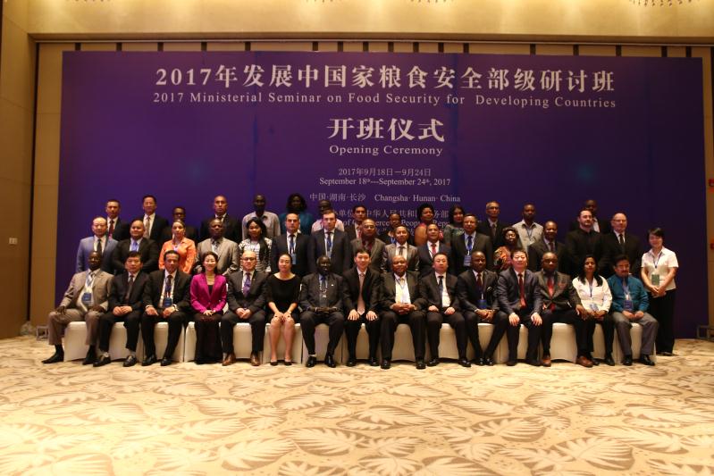 9月19日,由商務(wù)部主辦、袁隆平農(nóng)業(yè)高科技股份有限公司承辦的2017年發(fā)展中國家糧食安全部級研討班在長沙開班,湖南省商務(wù)廳副廳長李心球主持開班儀式。
