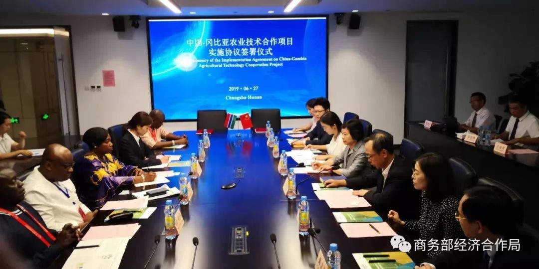 6月26日,商務部經(jīng)濟合作局艾音方副局長在長沙會見前來參加中非經(jīng)貿(mào)博覽會的岡比亞農(nóng)業(yè)部部長艾米?法布瑞。雙方簽署了援岡比亞農(nóng)業(yè)技術援助項目實施協(xié)議。