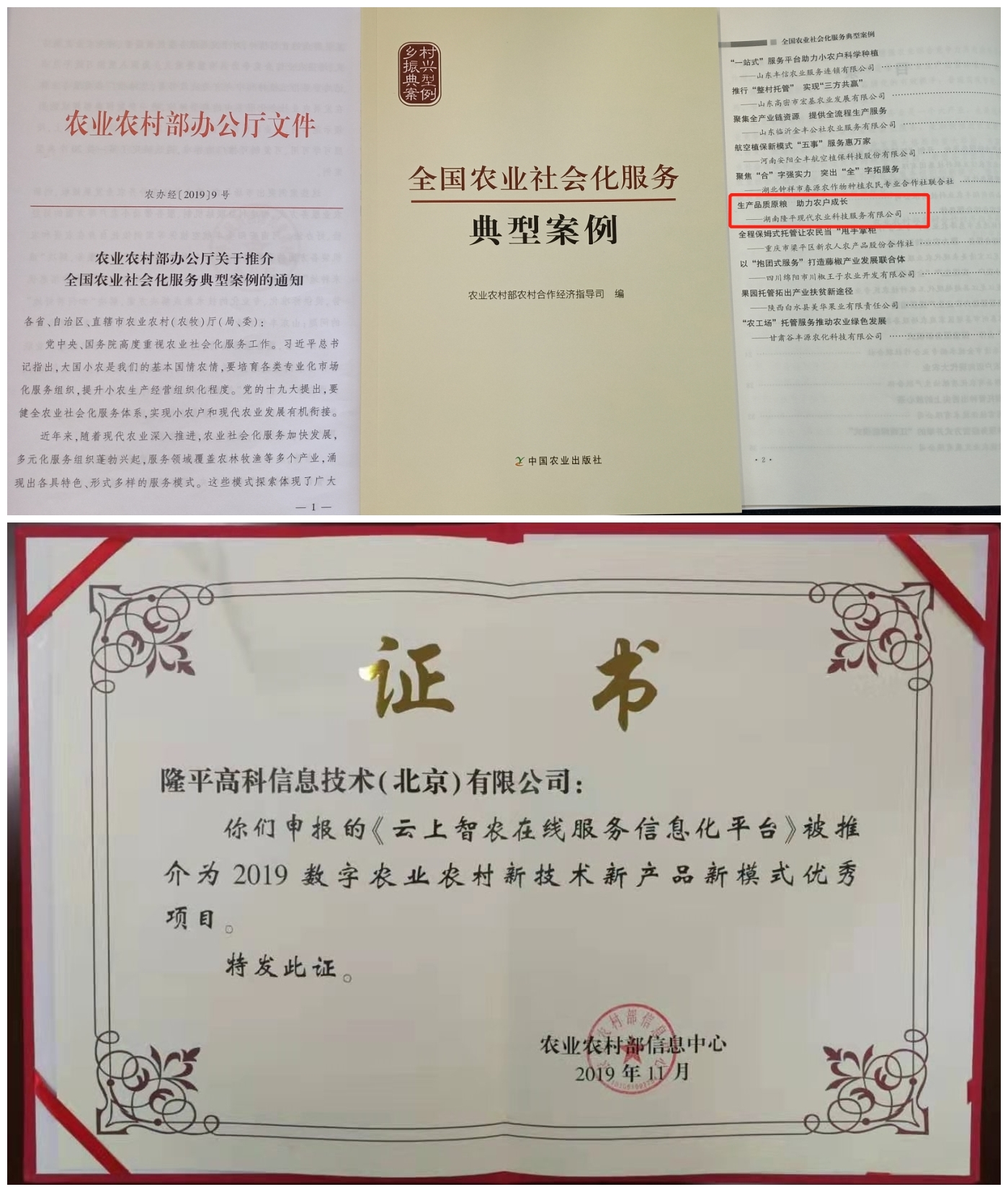 隆平農(nóng)服品質(zhì)原糧生產(chǎn)社會化服務(wù)模式,入選農(nóng)業(yè)農(nóng)村部全國首批二十個農(nóng)業(yè)社會化服務(wù)典型案例;用戶超過200萬的云上智農(nóng)培訓平臺,被評為2019數(shù)字農(nóng)業(yè)農(nóng)村新技術(shù)新產(chǎn)品新模式優(yōu)秀項目