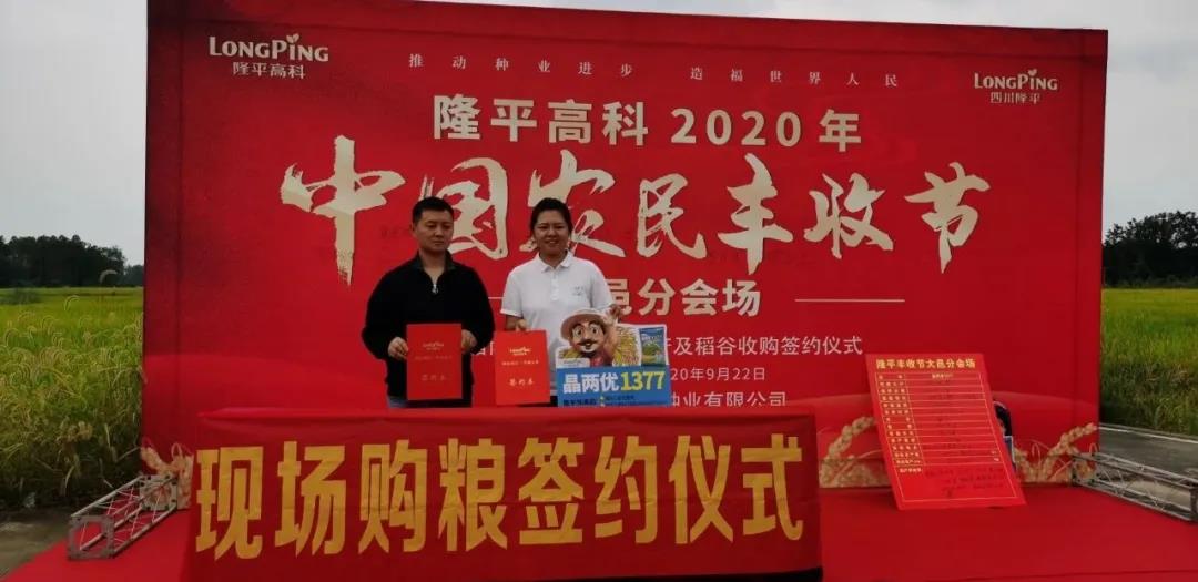 在四川大邑縣分會(huì)場(chǎng),大邑縣種子管理站領(lǐng)導(dǎo)張東平、大邑縣安仁鎮(zhèn)農(nóng)業(yè)綜合服務(wù)中心主任羅廳、廣漢米企四川金禾隆農(nóng)業(yè)有限公司負(fù)責(zé)人金小春等來到大邑縣高山鎮(zhèn)種植大戶張亞林種植的晶兩優(yōu)1377的200畝稻田,共同見證豐收。廣漢米企四川金禾隆現(xiàn)場(chǎng)與四川隆平簽訂糧食收購(gòu)協(xié)議,并承諾高于市場(chǎng)價(jià)收購(gòu)晶兩優(yōu)1377,為該區(qū)域的種植大戶提供了銷售保障。