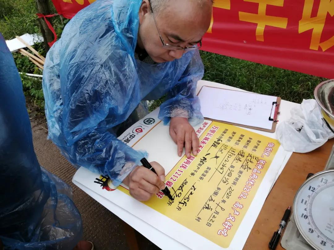 在湖南汨羅分會(huì)場(chǎng),稻香米業(yè)董事長(zhǎng)謝光新、汨羅生產(chǎn)方代表李凱陽(yáng)、優(yōu)至種業(yè)代表凌強(qiáng)簽訂了稻谷收購(gòu)簽約三方協(xié)議,現(xiàn)場(chǎng)簽約訂單10000畝,收購(gòu)價(jià)格為2.9元/公斤,相當(dāng)于145元一百斤,高于普通稻谷10-15元每百斤,現(xiàn)場(chǎng)農(nóng)戶十分喜悅,糧食價(jià)格有了保障,明年將繼續(xù)種植高產(chǎn)優(yōu)質(zhì)水稻品種泰優(yōu)390。