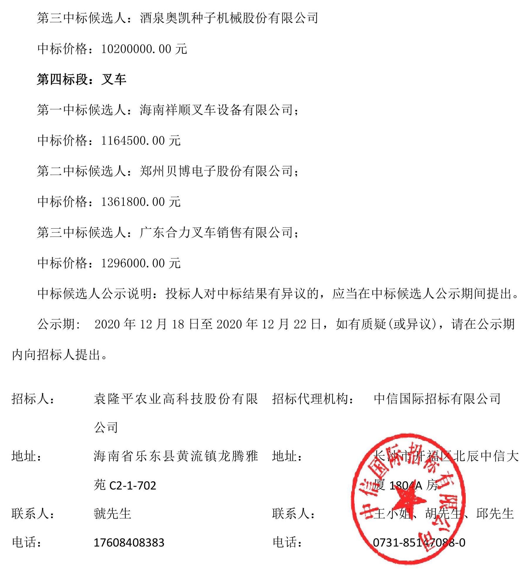 海南省樂(lè)東縣國(guó)家雜交水稻良種繁育基地設(shè)備項(xiàng)目中標(biāo)候選人公示
